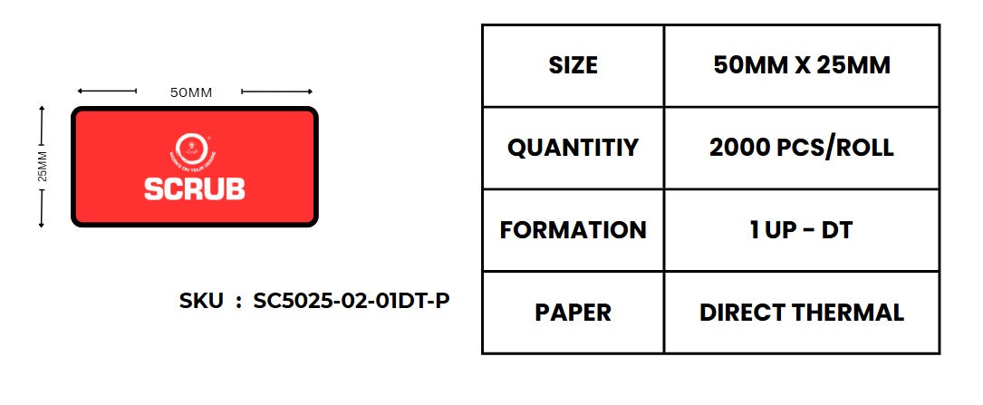 Scrub® 50x25mm Barcode Blank Label,1UP Per Row,Direct Thermal,2000 Labels in roll